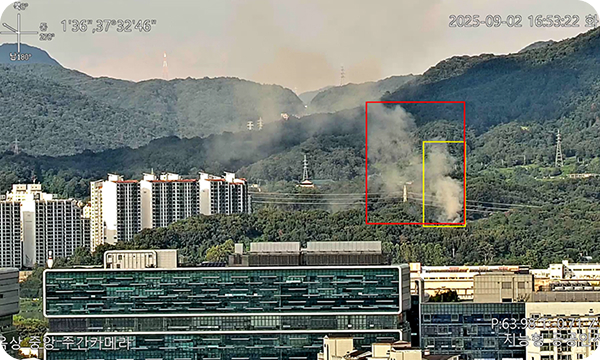 AI 기반의 고도화된 영상 분석 기술로 딥러닝 기반 연기 · 불꽃 특징 분석, 상황 인지 판단 알고리즘을 통합함으로써기존 산불 관제체계의 한계를 보완합니다.